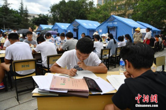 5月22日,雲(yun) 南省大理州漾濞縣漾濞一中的高三學生在露天“教室”備戰高考。5月21日,當地連發多次地震,最高6.4級。 中新社記者 劉冉陽 攝