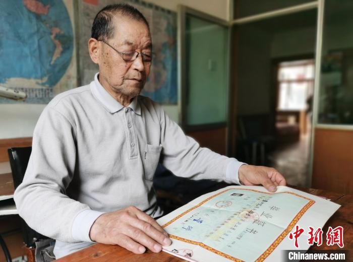 圖為(wei) 朱汝完整理個(ge) 人在浙江省永康中學初中部的畢業(ye) 證書(shu) 。 張添福 攝