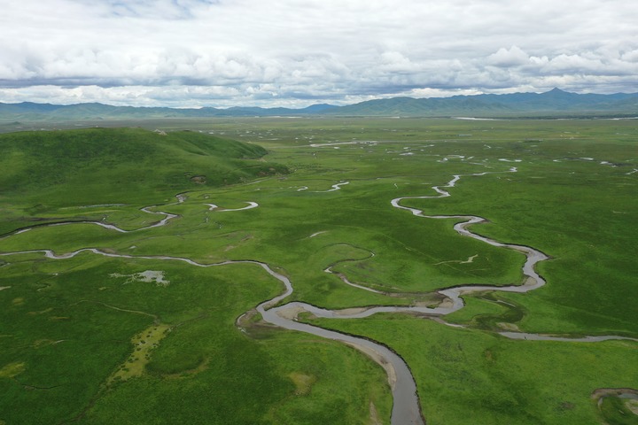 瑪曲縣阿萬(wan) 倉(cang) 濕地。新華社記者 文靜 攝(無人機照片)