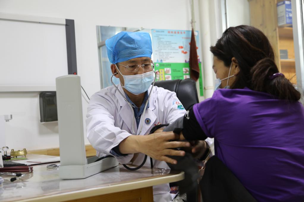 在瑪曲縣人民醫院,王團勝為(wei) 患者看病。新華社記者 馬莎 攝