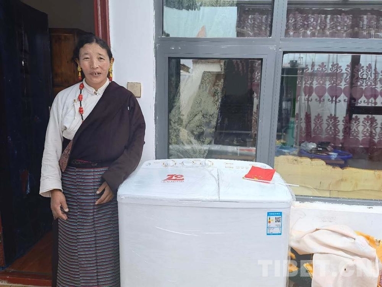 圖為(wei) 西藏自治區那曲市色尼區羅瑪鎮凱瑪村村民美美家收到的中央代表團贈送的禮物——大功率洗衣機 攝影:吳建穎