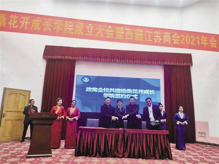 8月27日,南京市對口支援墨竹工卡縣工作組在西藏職業(ye) 技術學院舉(ju) 辦以“政商企校共建 聚力就業(ye) 援藏”為(wei) 主題的格桑花開成長學院成立大會(hui) 暨西藏江蘇商會(hui) 2021年年會(hui) 。