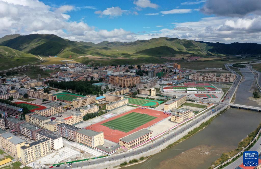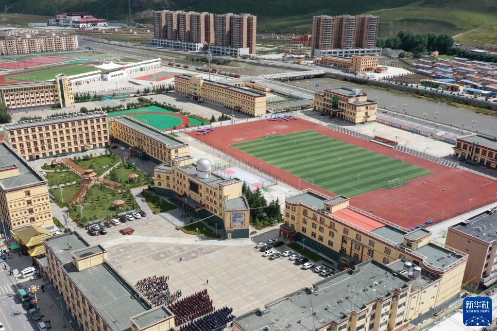 這是8月30日拍攝的碌曲縣藏族中學(無人機照片)。新華社記者 杜哲宇 攝