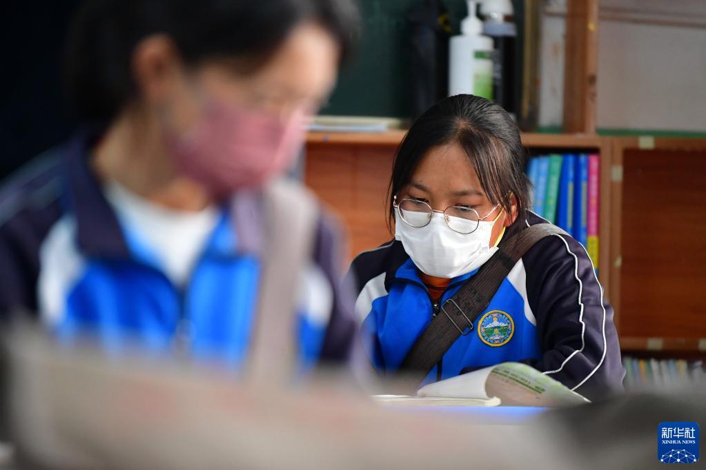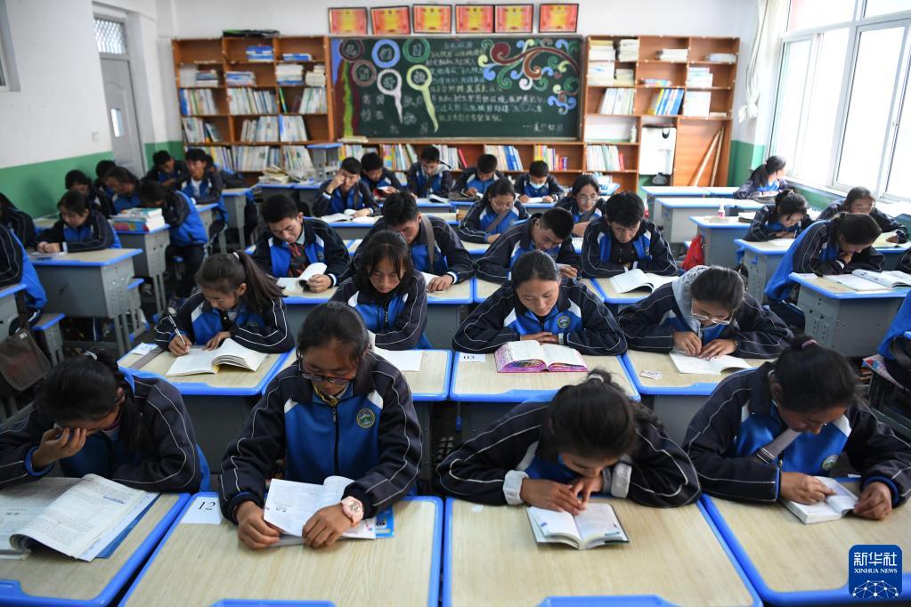 碌曲縣藏族中學的高三學生在教室裏看書(shu) (8月30日攝)。新華社記者 陳斌 攝