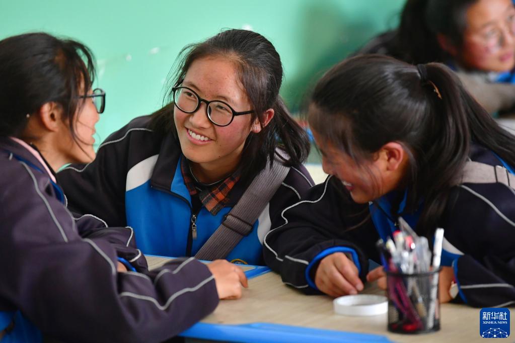 碌曲縣藏族中學的高三學生在教室裏交流(8月30日攝)。新華社記者 杜哲宇 攝