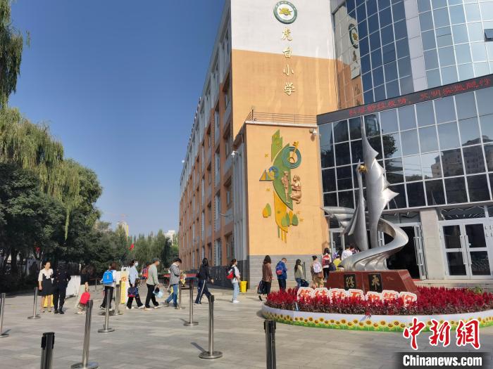圖為(wei) 虎台小學新生家長有序進入教學樓。 李雋 攝