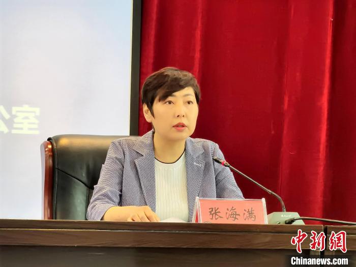 圖為(wei) 青海省人民政府國有資產(chan) 監督管理委員會(hui) 副主任張海滿介紹人才支持政策等情況。 祁增蓓 攝