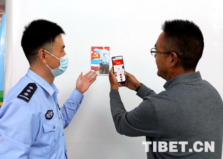 圖為(wei) 民警向當地幹部介紹黨(dang) 史“碼”上學