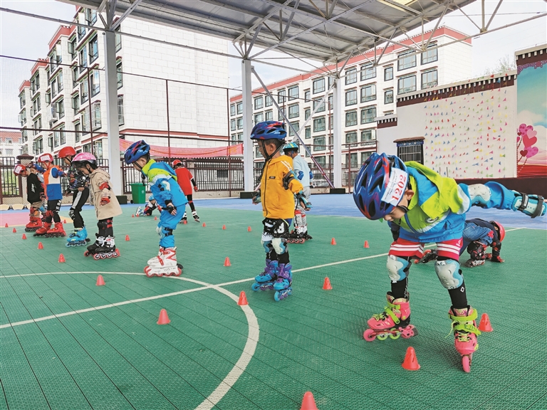 圖為(wei) 孩子們(men) 正在上輪滑課。拉薩融媒記者 餘(yu) 洋洋攝