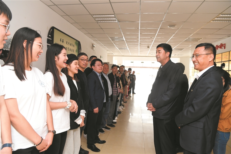 “你們(men) 辛苦了!祝大家節日快樂(le) ,身體(ti) 健康,紮西德勒!”嚴(yan) 金海先後來到拉薩北京高中、拉薩江蘇實驗中學,看望慰問一線教師,與(yu) 他們(men) 親(qin) 切交談,向全市廣大教師和教育工作者致以崇高敬意,感謝他們(men) 為(wei) 我市教育事業(ye) 作出的貢獻。並實地調研了解學校硬件設施、招生教學、國家統編三科教材使用等情況。嚴(yan) 金海指出,無論是昨天、今天還是明天,西藏的發展都離不開一代又一代用知識武裝起來的建設者的努力,這都是老師們(men) 精心培養(yang) 的結果。教師的職業(ye) 是最光榮的,老師也是最偉(wei) 大的,向您們(men) 致敬。隻有好老師,才能教出好學生。希望大家認真學習(xi) 貫徹習(xi) 近平總書(shu) 記關(guan) 於(yu) 教育工作特別是教師隊伍工作的重要論述,學習(xi) 貫徹習(xi) 近平總書(shu) 記對黃大年式教育團隊教師代表的回信精神,堅持立德樹人根本任務,加強教學,提升質量,做“四有”好老師,努力培育德智體(ti) 美勞全麵發展的社會(hui) 主義(yi) 建設者和可靠接班人。