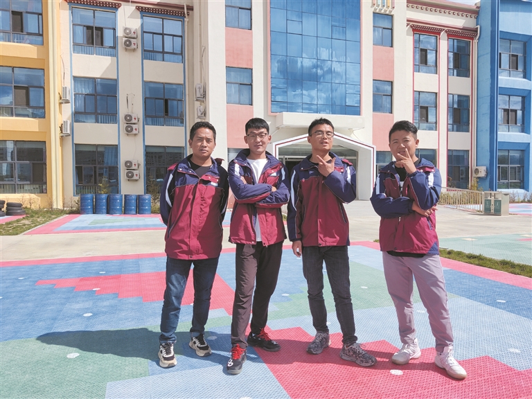 圖為(wei) 拉薩市江蘇實驗幼兒(er) 園4名男幼師合影。 拉薩融媒記者 餘(yu) 洋洋攝