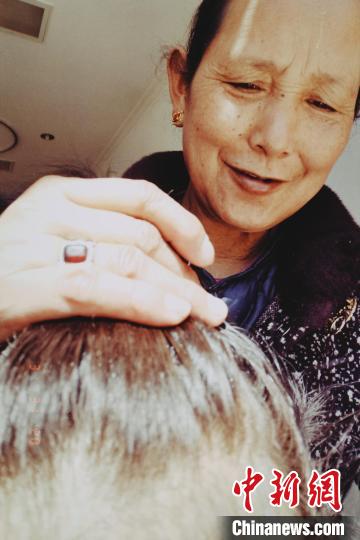 媽媽為(wei) 白瑪卓嘎紮頭發。 白瑪卓嘎供圖