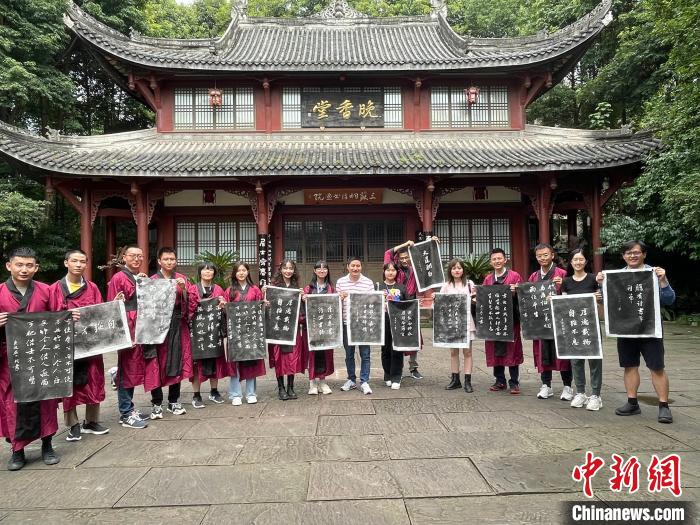 上香、祭文、行祭拜禮……在三蘇祠,台灣大學生穿上漢服開展了祭拜活動,深入了解了中國傳(chuan) 統文化和禮儀(yi) 。同時,在趣味拓片活動中,不少學生做了“但願人長久,千裏共嬋娟”字樣的拓片,表達了對中秋佳節的美好祝福。