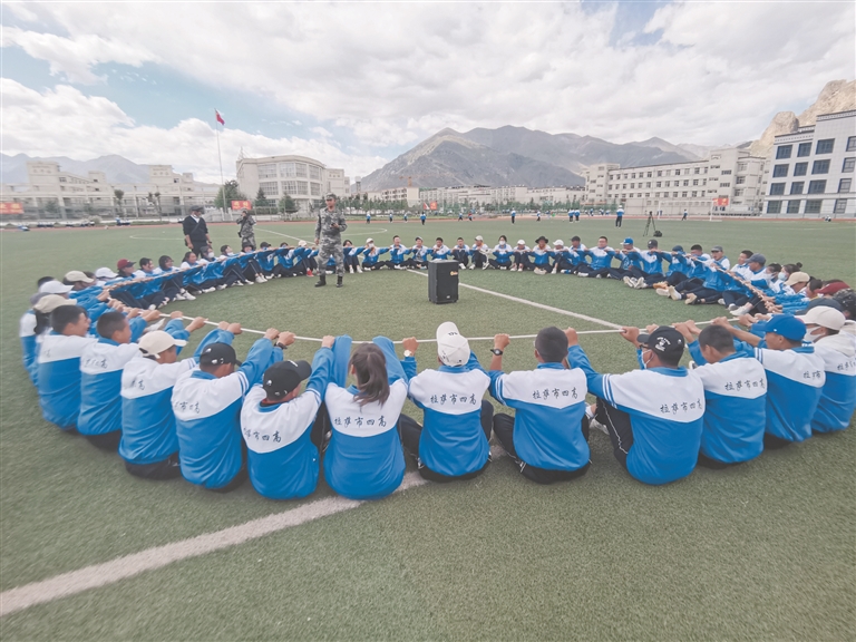 圖為(wei) 動力圈遊戲環節,同學們(men) 合力轉圈。拉薩融媒記者 郝奕凝攝