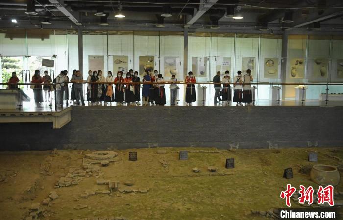 在成都的港澳台僑(qiao) 大學生們(men) 正在杜甫草堂博物館遺址館參觀。 劉忠俊 攝