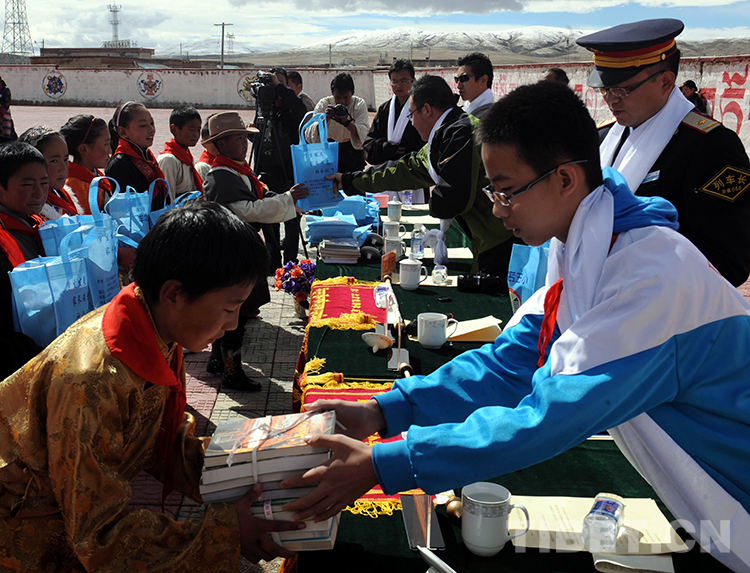 為(wei) 了幫助西藏貧困地區的藏族孩子學到更多的科學文化知識,豐(feng) 富他們(men) 的業(ye) 餘(yu) 文化生活,新華社北京分社在捐贈中號召黨(dang) 團員積極參與(yu) ,共捐藏漢文書(shu) 籍1000多冊(ce) ,並委托我將這些書(shu) 送到西藏孩子手中。