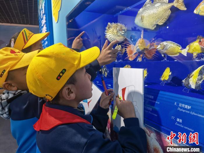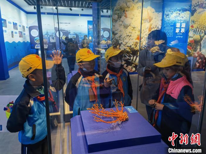 圖為(wei) 正在參觀珊瑚展的西藏小學生。 趙延 攝