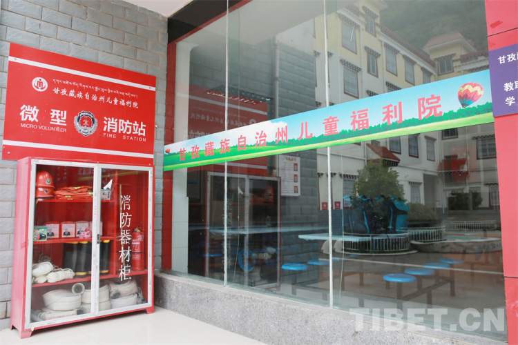圖為(wei) 甘孜藏族自治州兒(er) 童福利院食堂外的微型消防站 攝影:楊月雲(yun)