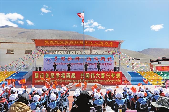 近日,西藏自治區高級人民法院聯合薩迦縣開展了以“鄉(xiang) 村振興(xing) ·法治同行”為(wei) 主題的法治宣講暨文藝匯演活動。各有關(guan) 單位幹部、各村群眾(zhong) 代表及中心小學部分師生共560餘(yu) 人參加活動。