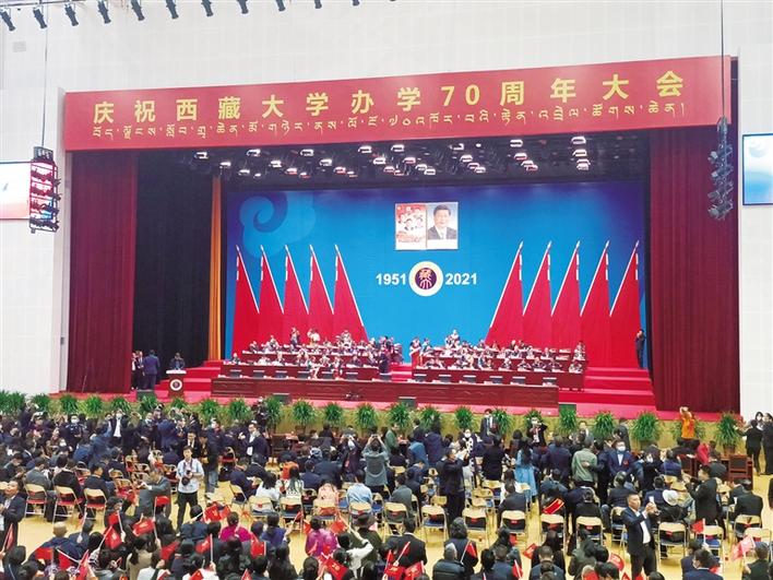 10月16日,西藏大學辦學70周年慶祝大會(hui) 在西藏大學納金校區隆重舉(ju) 行。慶祝大會(hui) 現場,西藏大學領導、校友代表、學生代表等參會(hui) 人員共同見證了藏大這一曆史性的輝煌時刻。70年櫛風沐雨,西藏大學從(cong) 1951年的帳篷學校發展至今,已累計培養(yang) 8萬(wan) 餘(yu) 名各級各類專(zhuan) 門人才,為(wei) 西藏和西南地區經濟建設和社會(hui) 發展提供了重要的智力支撐,如今已成為(wei) 西藏創新人才培養(yang) 、科學研究和成果轉化、高層次決(jue) 策谘詢和民族文化傳(chuan) 承創新的重要基地和對外開放與(yu) 交流的重要窗口。