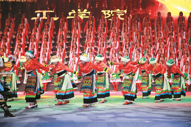 晚會(hui) 在情景舞蹈《路》和《歡歌起舞》中拉開序幕,分“團結奮鬥”“感恩奮進”“走向美好”三個(ge) 篇章,通過歌曲、舞蹈、時空對話、音詩畫、音舞詩等多種形式,向觀眾(zhong) 講述了西藏大學70年來走過的發展曆程,彰顯了藏大人團結愛國、艱苦奮鬥、勇創一流的昂揚精神。