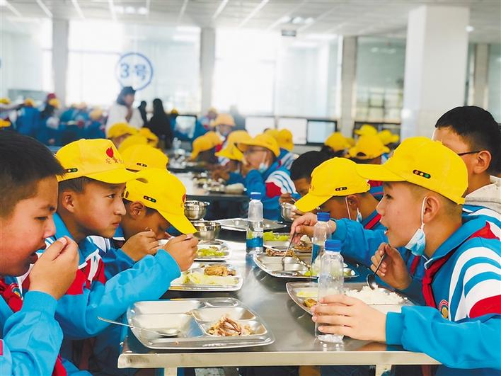 圖為(wei) 學生在新校區食堂用餐。記者 央金 攝