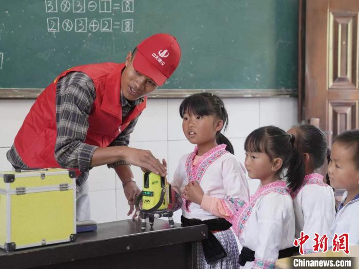 誌願者們(men) 首先通過穿戴“安全帽”和“反光背心”培養(yang) 孩子們(men) 的安全觀念,希望他們(men) 成為(wei) 學校和家裏的小小“安全員”。然後通過體(ti) 驗操作激光掃平儀(yi) ,切入建築簡易知識小課堂。