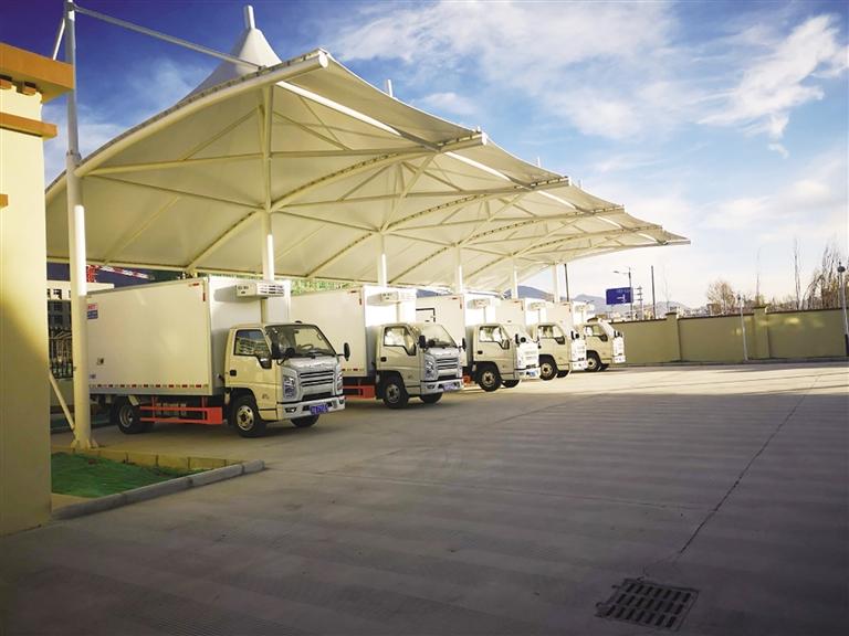 27日上午9時許,記者來到位於(yu) 318國道南側(ce) 的拉薩市城關(guan) 區淨土中央廚房,看見道路兩(liang) 邊停放著一排排送餐車輛。“目前,我們(men) 共有20輛保溫加溫送餐車輛,而且每輛送餐車有兩(liang) 把鑰匙,一把在工作人員手中,另一把在學校工作人員手中。當午餐送到學校後,兩(liang) 把鑰匙同時使用才能將車輛打開。”拉薩市城關(guan) 區淨土中央廚房運營管理有限公司總經理葉濤介紹,這樣做,主要是為(wei) 了保證運送途中的食品安全。