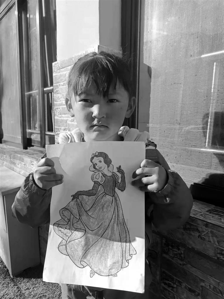 赤培村雙語幼兒(er) 園的珠傑在畫紙上用彩色畫筆描繪出了挖掘機的模樣,當他向記者展示自己的心願時說,“在所有的玩具中我最喜歡挖掘機,長大後我要開挖掘機。”珠傑言語中帶著幾分自豪。