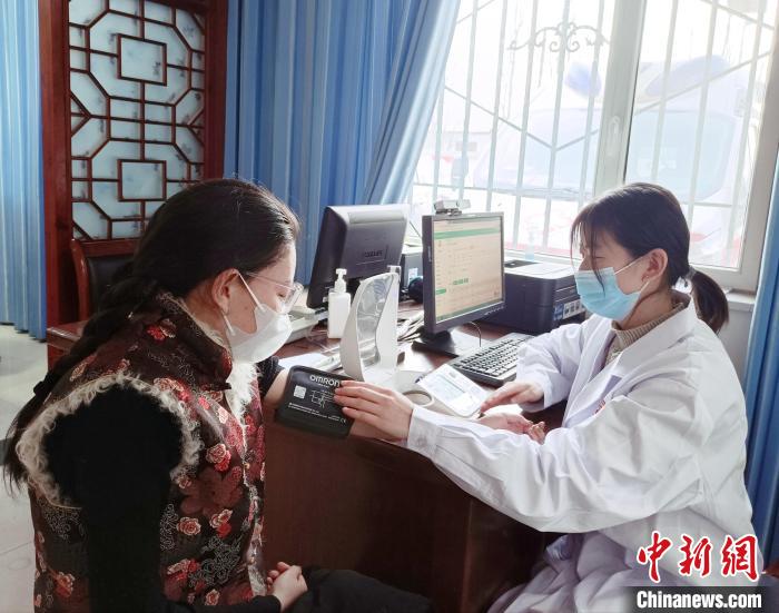 圖為(wei) 醫務人員為(wei) 牧民進行檢查。青海大學醫學部營養(yang) 健康促進中心 供圖