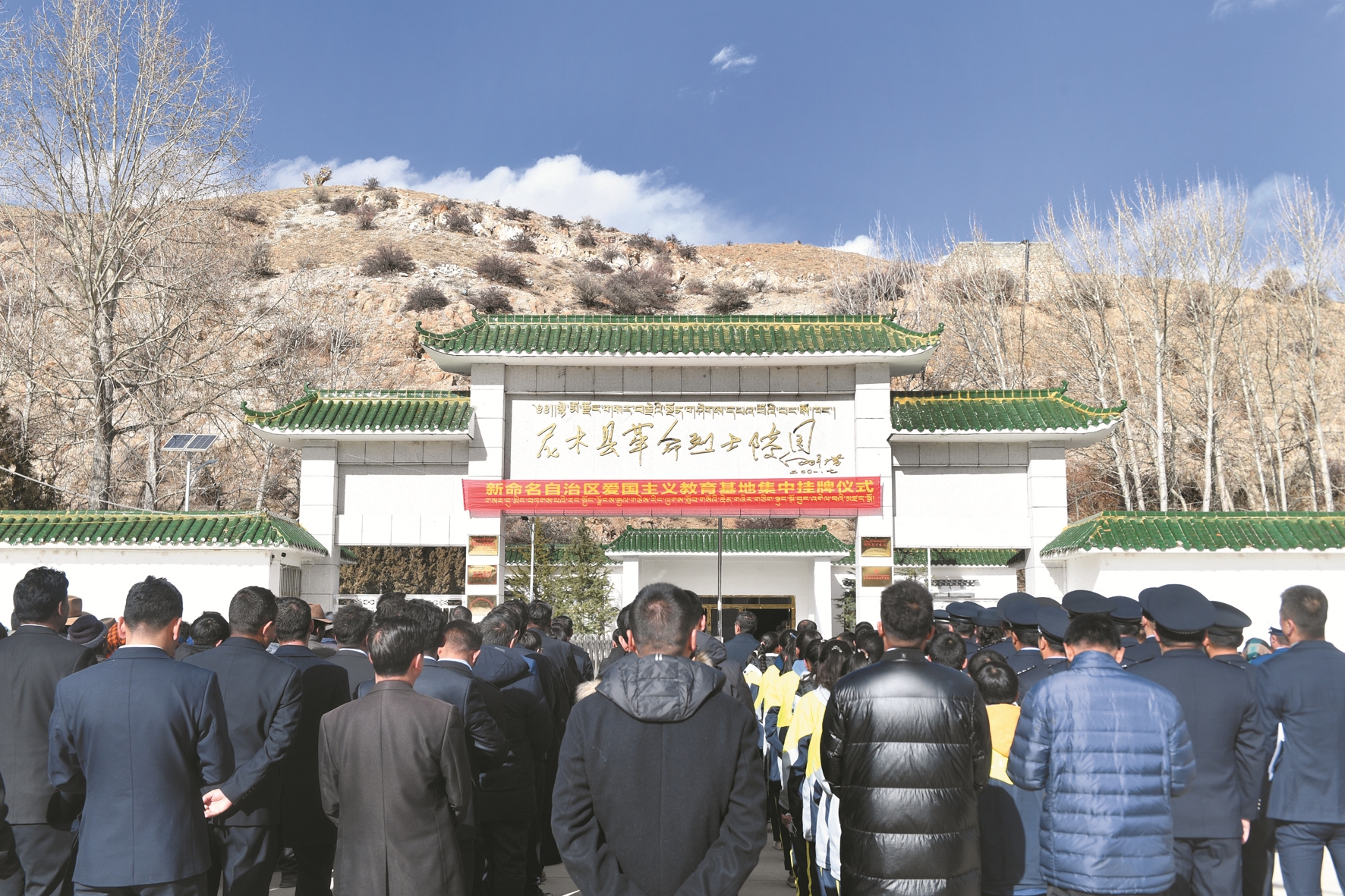 12月14日,新命名的自治區愛國主義(yi) 教育基地尼木縣革命烈士陵園和林周農(nong) 場紅色遺址集中掛牌儀(yi) 式在尼木縣革命烈士陵園舉(ju) 行,尼木縣幹部群眾(zhong) 、公安幹警、學生等200餘(yu) 人參加掛牌儀(yi) 式。