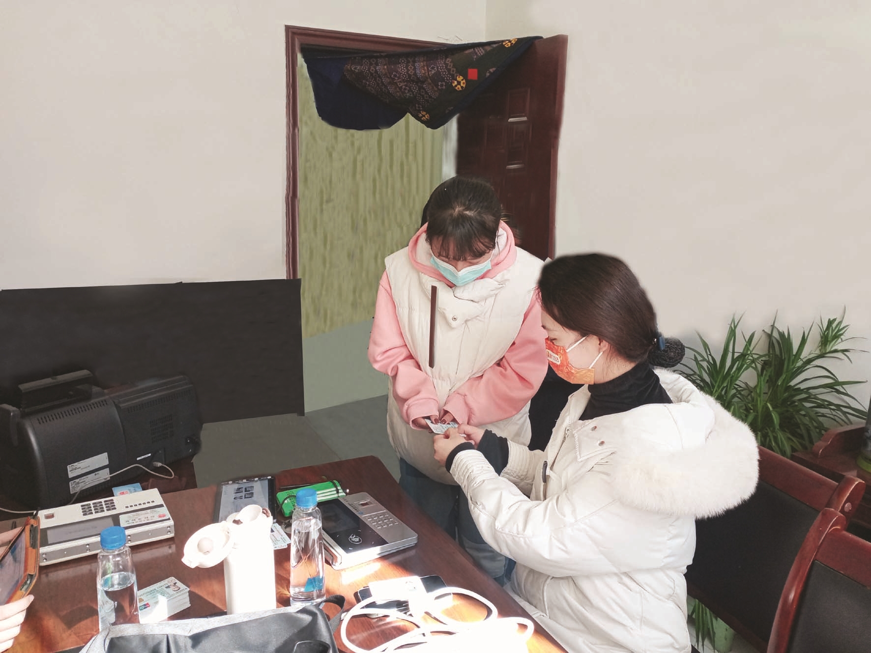 貢覺卓瑪是西北民族大學大三學生,信息采集成功後,她和其他孩子們(men) 來到即時製卡現場排隊領卡。工作人員將製好的社保卡激活後,交給他們(men) ,並講解如何使用。
