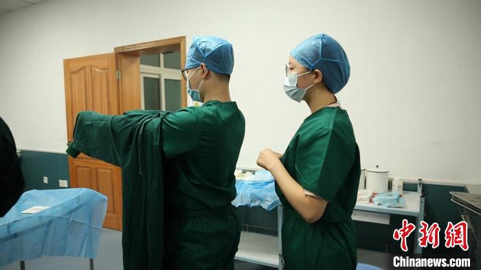 圖為(wei) 學生在練習(xi) 穿脫手術衣。(資料圖) 甘肅中醫藥大學第一臨(lin) 床醫學院供圖