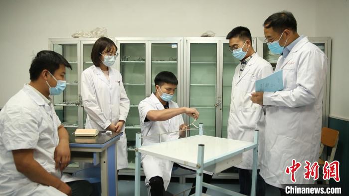 圖為(wei) 學生在進行外科打結考核。(資料圖) 甘肅中醫藥大學第一臨(lin) 床醫學院供圖