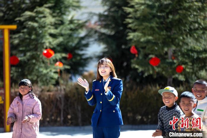 在活動中,誌願者們(men) 首先與(yu) 孩子們(men) 進行了自我介紹,詳細了解孩子們(men) 的生活、學習(xi) 情況。同時,帶著孩子們(men) 開展跳繩、丟(diu) 沙包、短跑等互動活動。隨後,藏族歌手、總隊教育宣傳(chuan) 處助理員索朗德吉為(wei) 孩子們(men) 演唱歌曲,在動聽的旋律中不時傳(chuan) 來孩子們(men) 的歡聲笑語,其樂(le) 融融的氛圍,更是感染著在場的每一個(ge) 人。