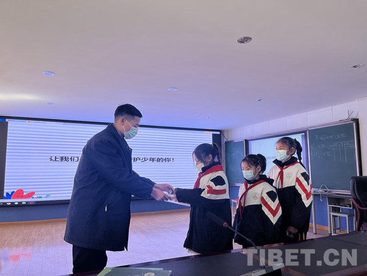 課堂上,該院未檢辦案團隊成員采用PPT等多媒體(ti) 手段向同學們(men) 介紹了民法典、未成年人保護法、預防未成年人犯罪法、治安管理處罰法等與(yu) 他們(men) 切身利益密切相關(guan) 的法律,並通過圖文並茂的方式,重點講述了防拐騙、防欺淩、防性侵等身邊發生的典型小案例。“孩子們(men) 要認真學法、嚴(yan) 格守法,學會(hui) 運用法律保護自己,敢於(yu) 對不法侵害行為(wei) 說‘不’!”該院未檢辦案團隊成員澤仁鄧珠與(yu) 學生們(men) 互動交流時講道。