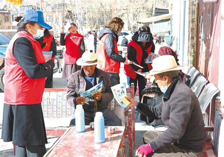 圖為(wei) 山南市中級人民法院女法官、女幹警深入乃東(dong) 區羅布林卡社區開展法治宣傳(chuan) 教育活動。記者 段敏 攝
