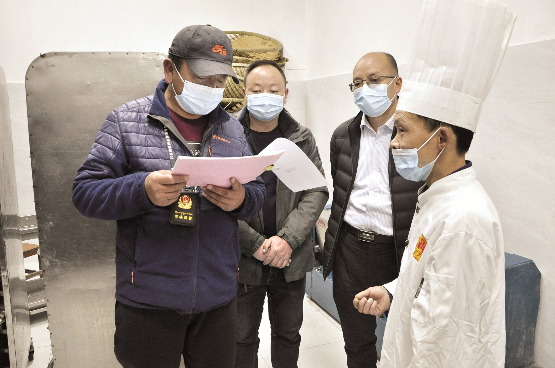 在拉薩市第二高級中學,執法人員檢查了食堂就餐區衛生狀況,實地查看了後廚衛生、食材倉(cang) 庫、食品留樣記錄表和各項製度上牆情況;在該校饅頭房,檢查了食品添加劑使用情況和相關(guan) 記錄。執法人員實地檢查後,向學校食堂開具《餐飲服務單位監督檢查要點表》,列出整改內(nei) 容。隨後,執法人員還來到拉薩市第二高級中學裏麵的某超市,對超市陳列食品的保質期和進貨記錄資料進行檢查。