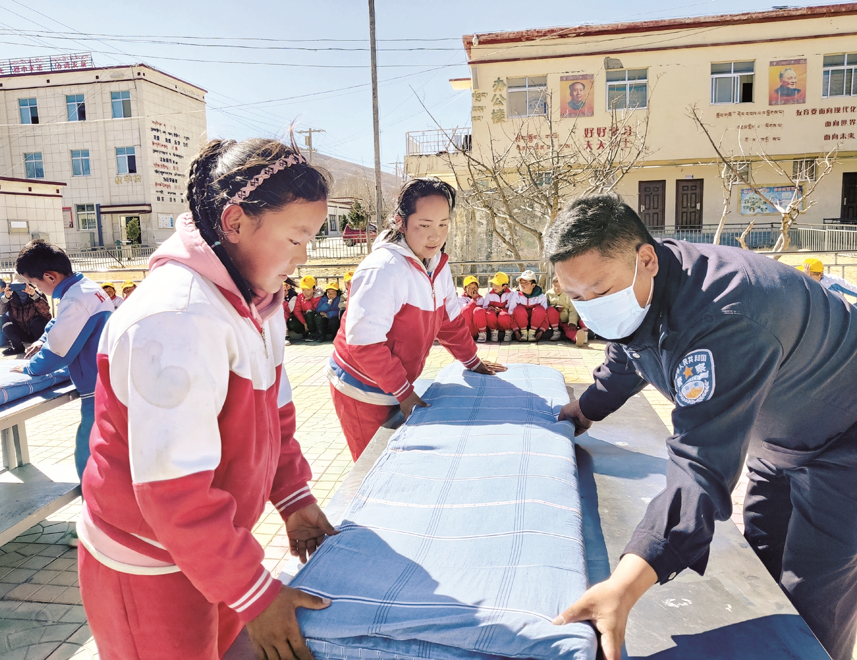 圖為(wei) 拉薩出入境邊防檢查站民警教學生采用“一鋪二折三切四疊”的方法,將被子疊成“豆腐塊”。拉薩融媒記者 餘(yu) 洋洋攝