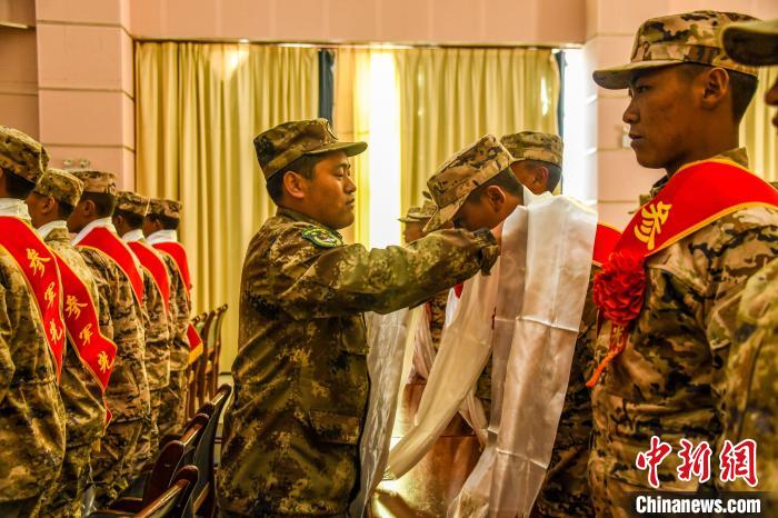 圖為(wei) 為(wei) 入伍新兵獻哈達。 朱呈 攝