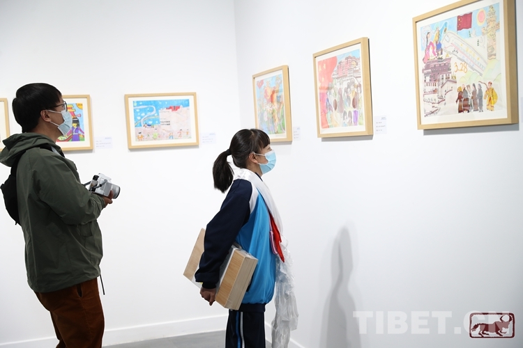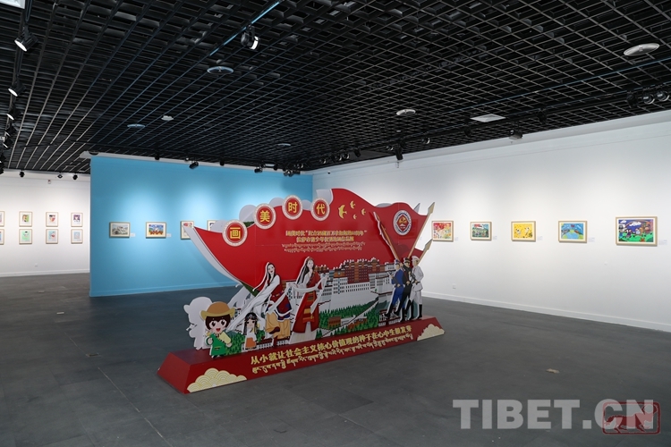 圖為(wei) 畫美時代——“紀念西藏百萬(wan) 農(nong) 奴解放63周年”拉薩市青少年優(you) 秀繪畫作品展現場