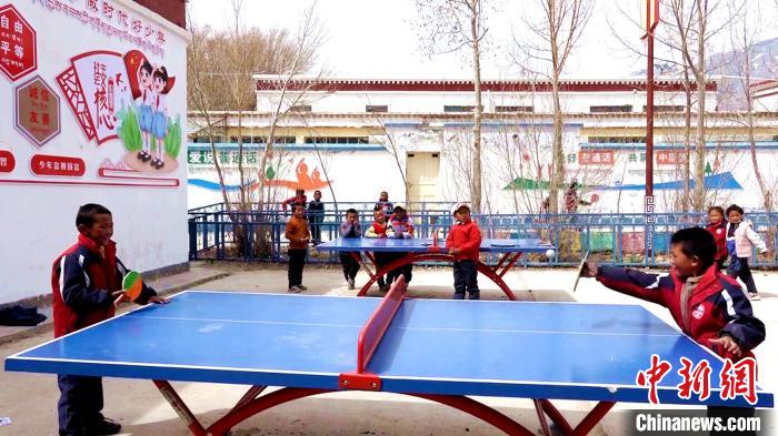 圖為(wei) 多油完小學生在課餘(yu) 時間打乒乓球。 貢桑拉姆 攝