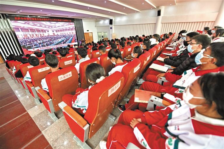 圖為(wei) 拉薩中學的師生觀看慶祝中國共產(chan) 主義(yi) 青年團成立100周年大會(hui) 直播。 記者 唐斌 攝