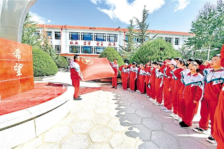 圖為(wei) 拉薩中學的學生在團旗下重溫入團誓詞。