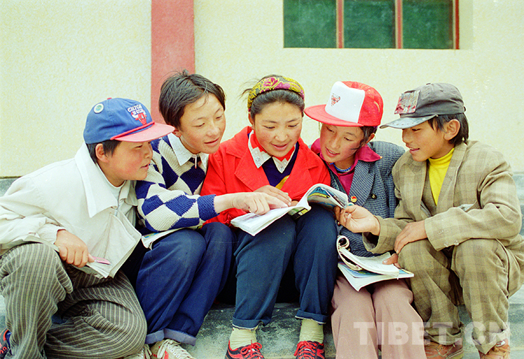 這是嘉黎縣中學學生在課餘(yu) 時間相互學習(xi) 交流。該校由寧夏回族自治區和新疆維吾爾自治區共同援建(唐召明1997年攝)