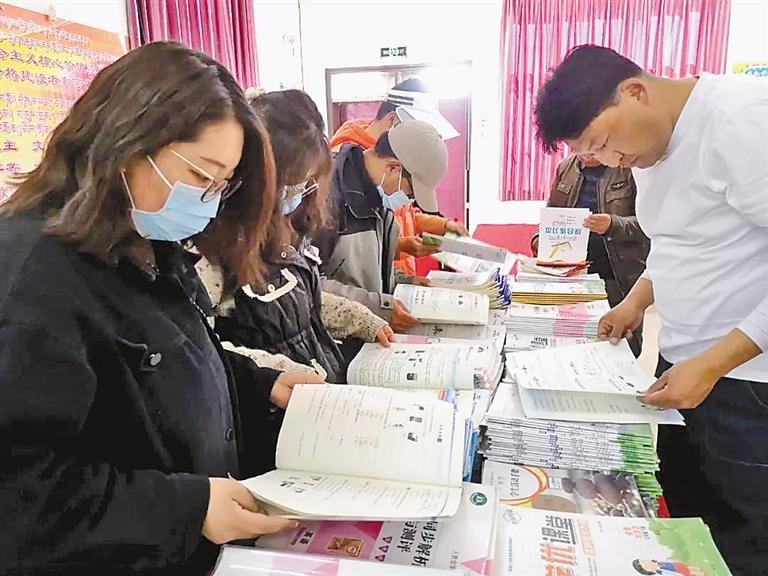 圖為(wei) 參訓教師學習(xi) 觀摩優(you) 秀教師的備課、學生的作業(ye) 等。 記者 裴聰 攝