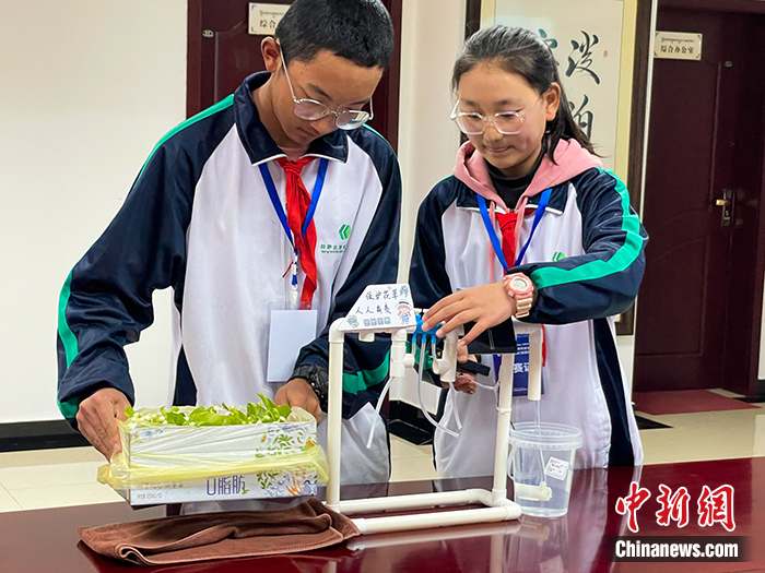 圖為(wei) 智慧社區中學組參賽選手向評委老師展示作品《太陽能自動澆灌係統》的工作原理。 中新社記者 趙朗 攝