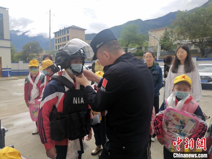 圖為(wei) 民警為(wei) 小學生穿戴警用裝備。派邊境派出所供圖