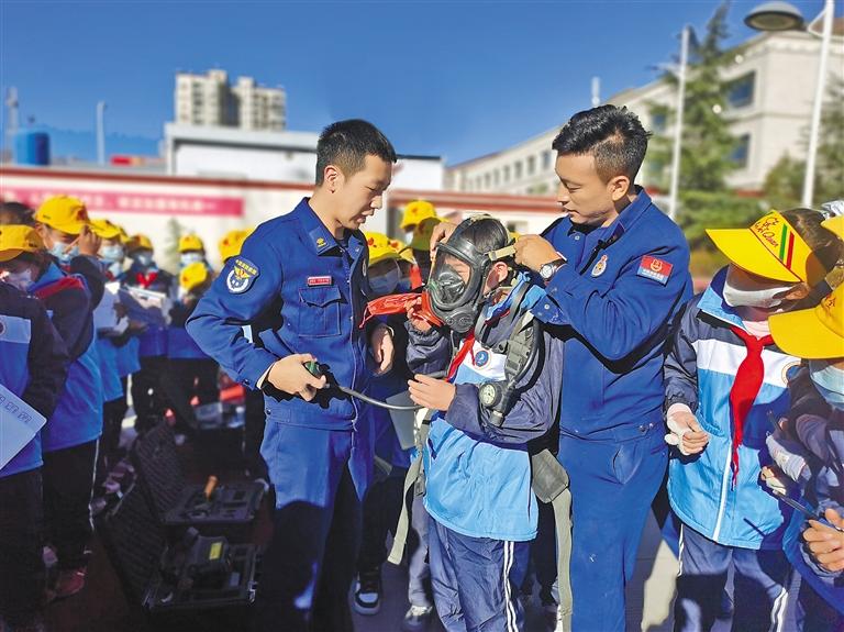 圖為(wei) 拉薩市堆龍德慶區薑昆黃小勇希望小學少先隊開展“走進消防救援隊 零距離體(ti) 驗消防”活動。記者 張宇 通訊員 蘭(lan) 佳琪 攝