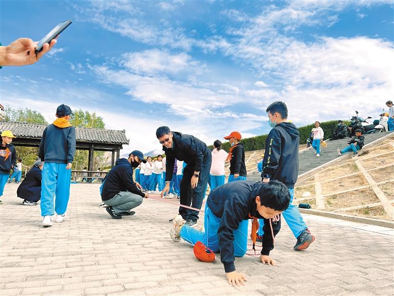 圖為(wei) 拉薩市第一小學學生們(men) 在老師的帶領下開展戶外活動。